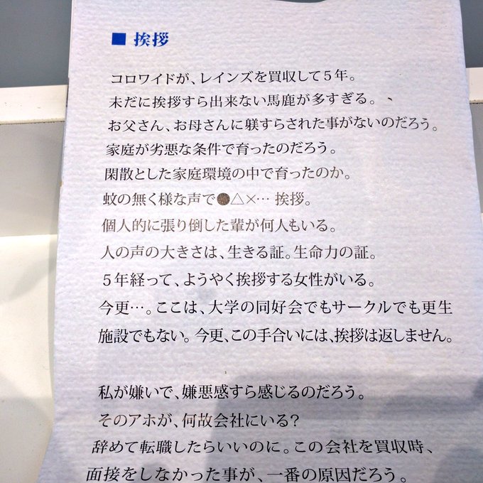 2019/02/10 (日) 13:35:52 ◆ ▼ ◇ [misao]誰も居ない喫煙室で盛大に湿った屁をこいたら女の子が居た(;´Д`)死にたい