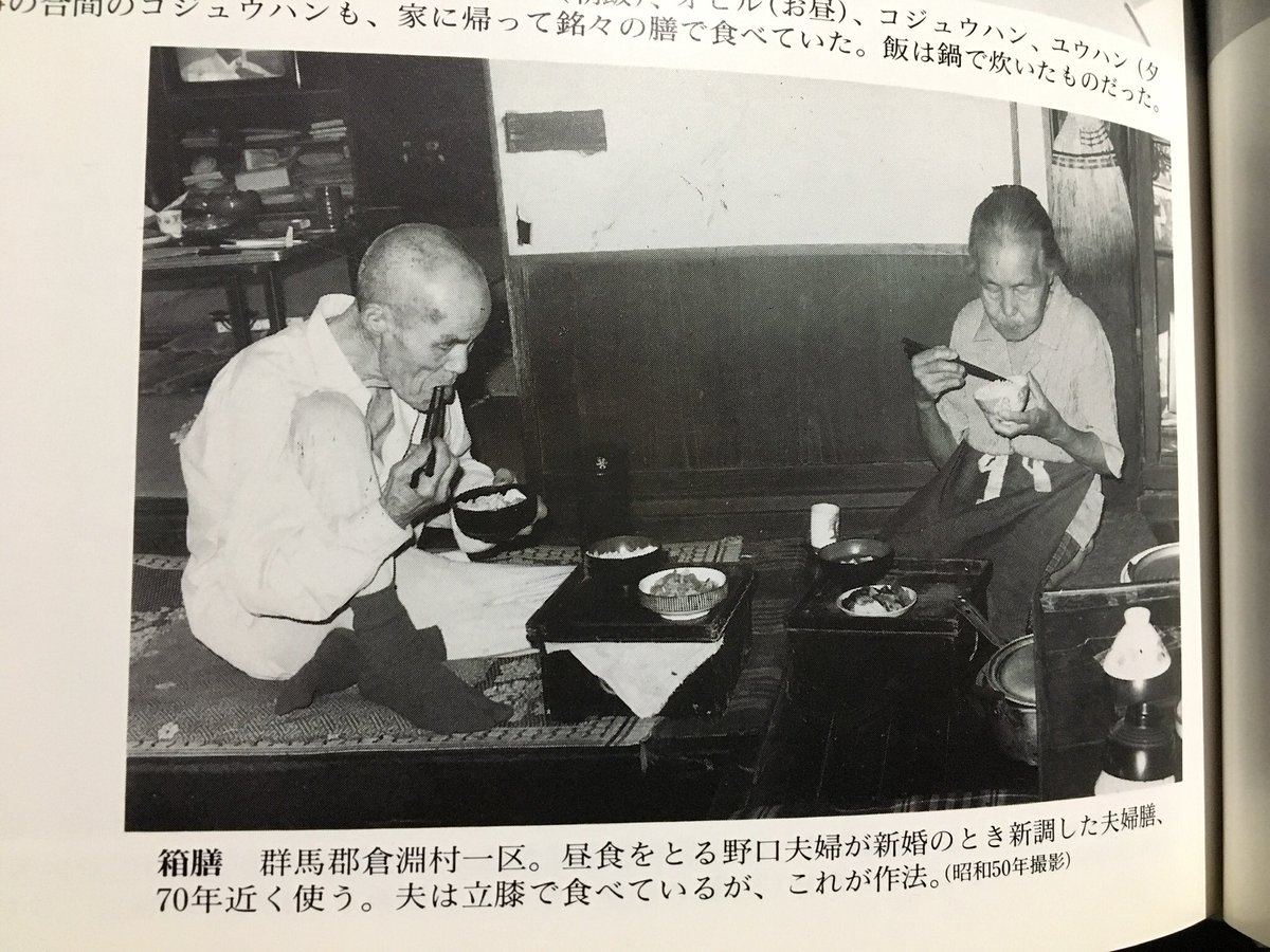 奥さんが旦那と膳を並べて食べとるな(;´Д`)これは割りと近代の作法だ