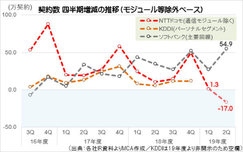 スマホベースの契約者数増減出たな(;´Д`)